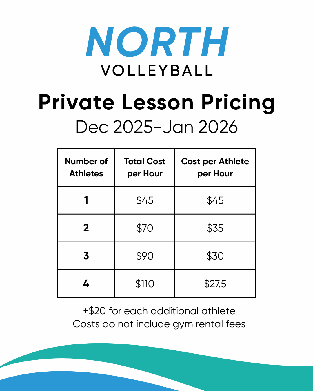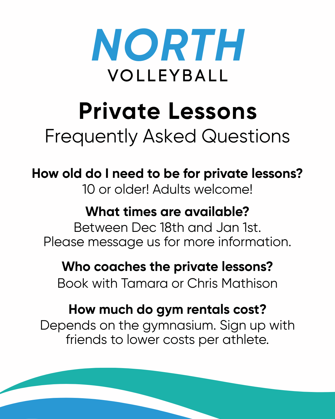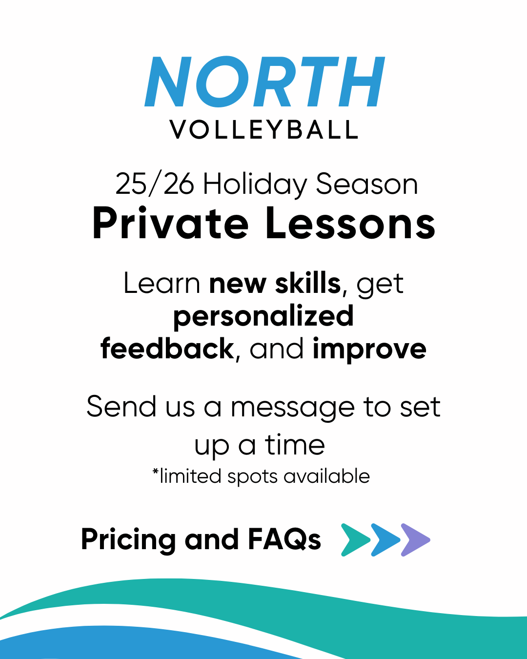 North Volleyball offers private lessons for individuals, small groups, and teams.